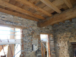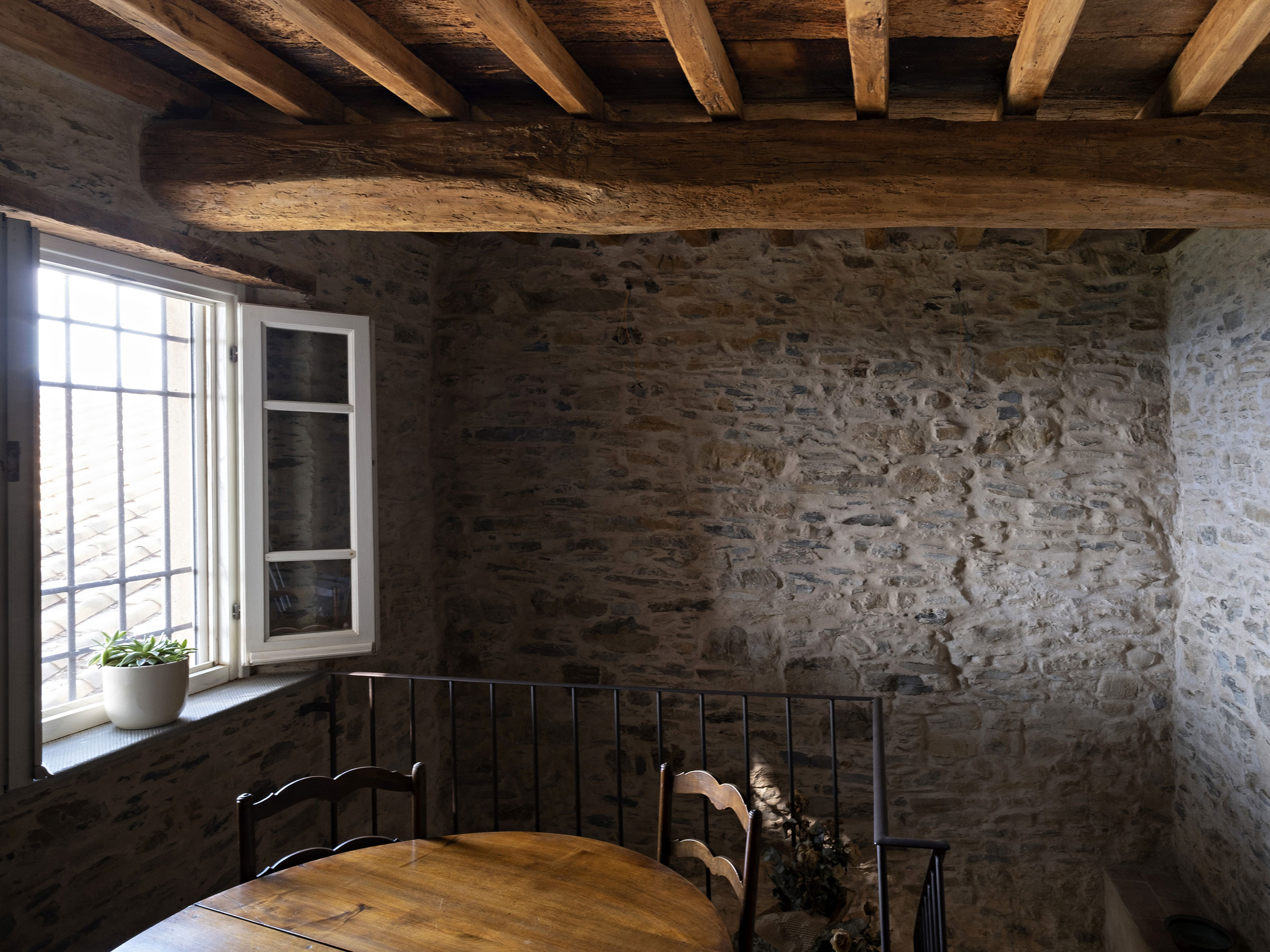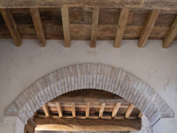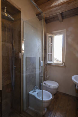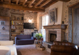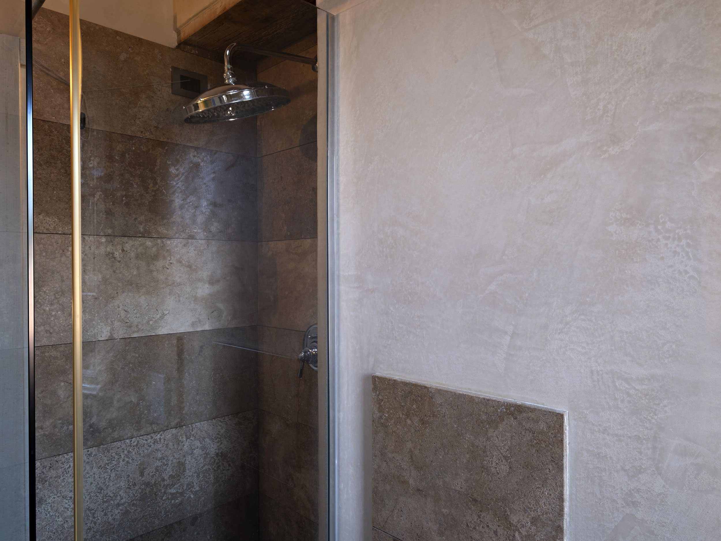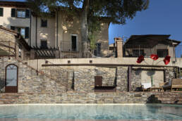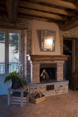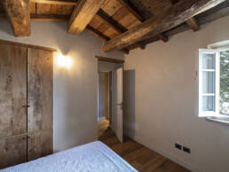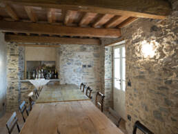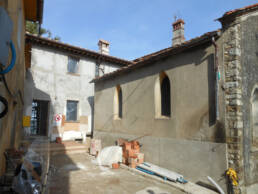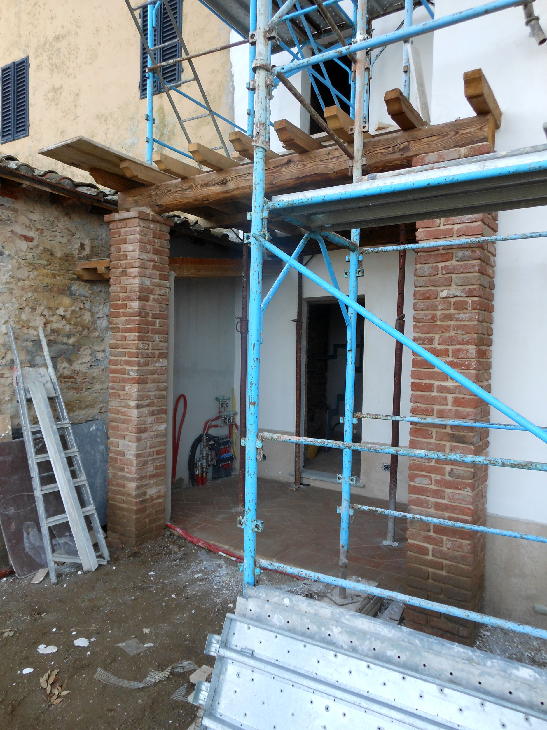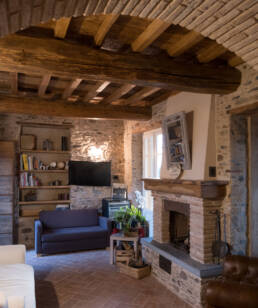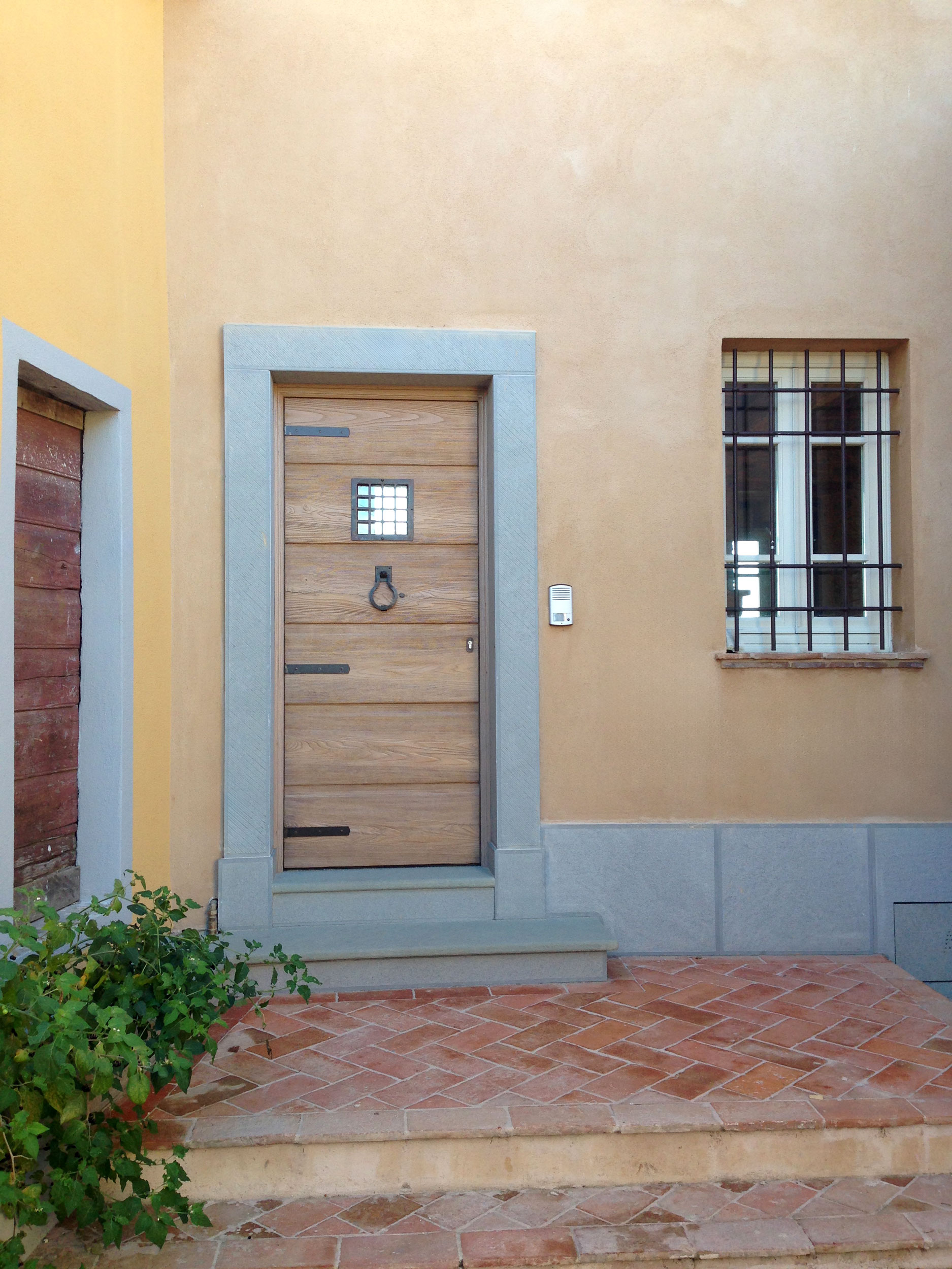 Per rispettare a pieno lo stile rustico toscano nelle finiture abbiamo utilizzato materiali di recupero quali travi in rovere antico per la ricostruzione dei tavolati e delle pavimentazioni; mezzane invecchiate e trattate con calci naturali per solai, soglie finestre e pavimentazioni.
