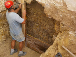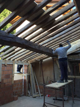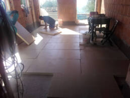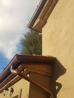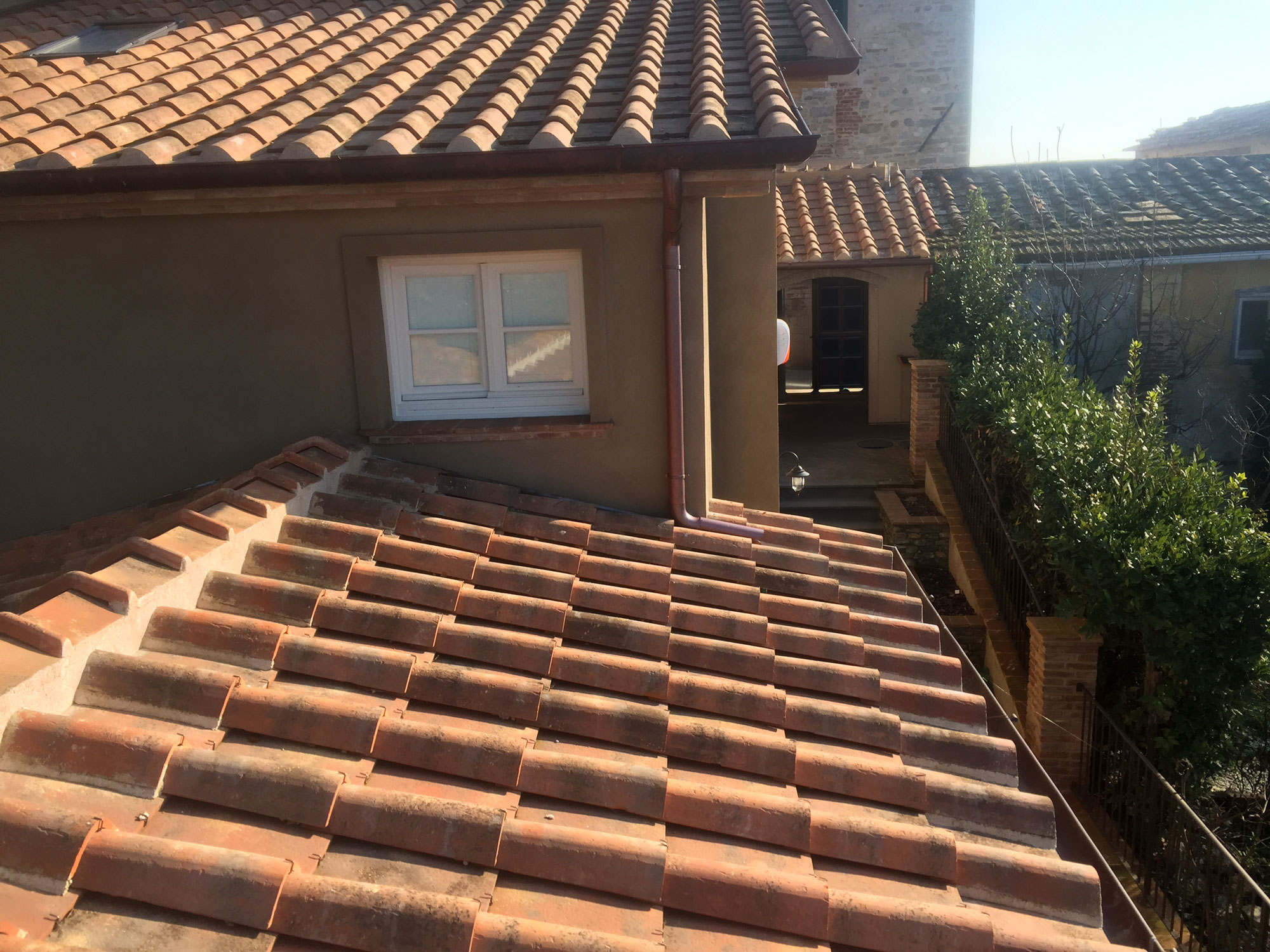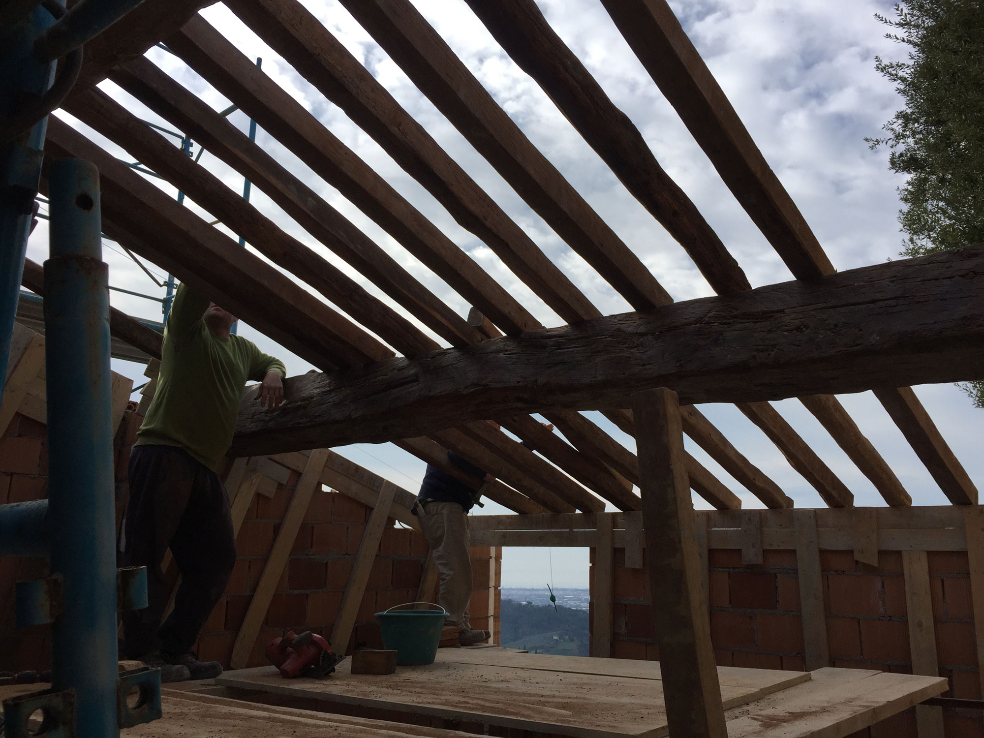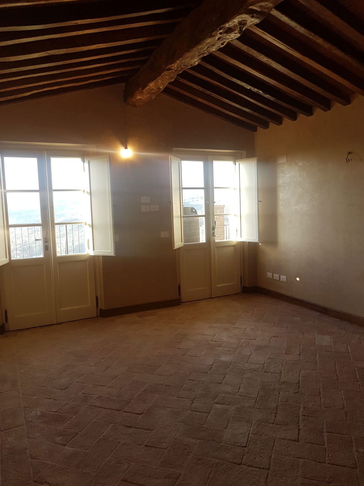 Abbiamo utilizzato materiali certificati di alta qualità e per le finiture pietra recuperata sul posto, travi in rovere antico utilizzate per la ricostruzione dei solai e delle pavimentazioni, mezzane anticate per il rifacimento delle pavimentazioni, archi in mattoni, infissi interni ed esterni in legno nel tipico stile toscano, scala in ferro rivestita in legno, scala esterna in pietra serena, rivestimenti dei bagni in travertino color noce e rasature a calce lisce e graffiate.