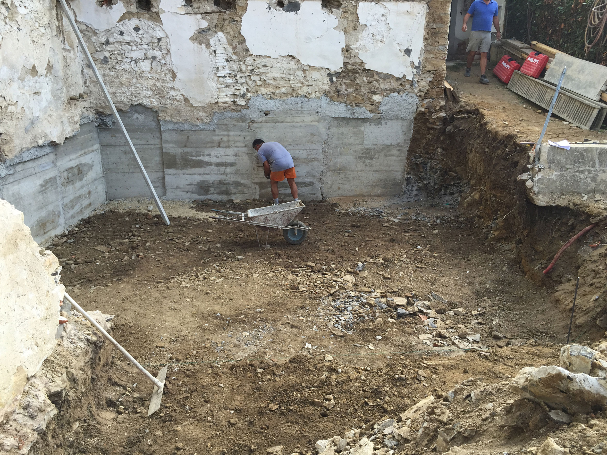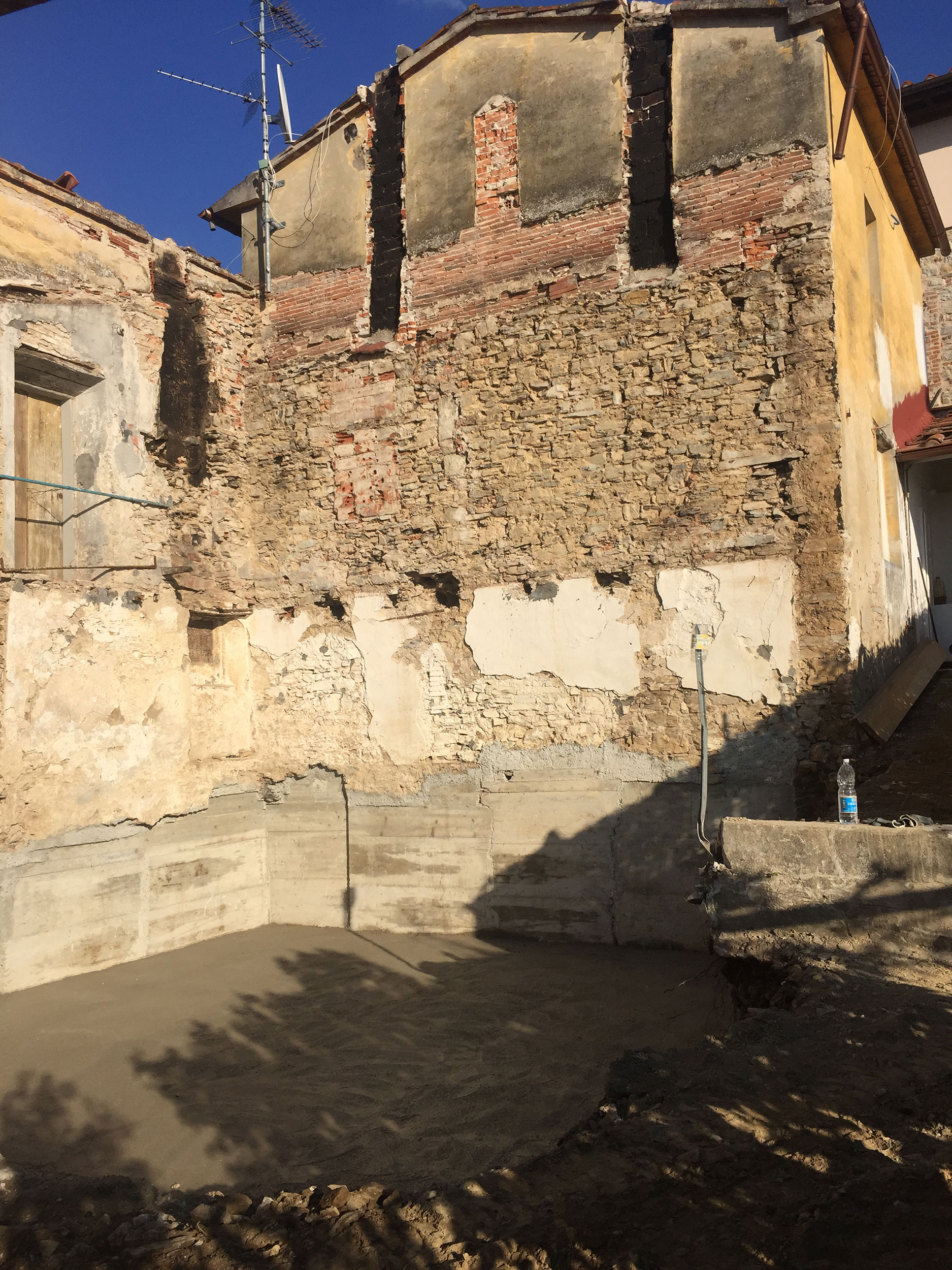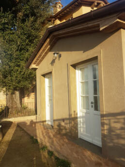 Vicinanze di Pieve a Elici splendida vista mare, la casa di Giorgio è stata realizzata con intervento di demolizione e ricostruzione completa del fabbricato esistente tramite la realizzazione di scavi, sottofondazioni delle vecchie murature con ricostruzione delle solette e dei muri in c.a mono faccia in controspinta adiacenti al fabbricato esistente dal piano seminterrato fino al tetto, ricostruzione di strutture in cemento armato/acciaio, muratura portante termica, cerchiature ed impianti tecnologici.