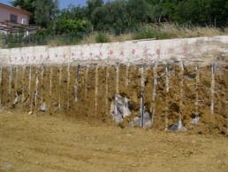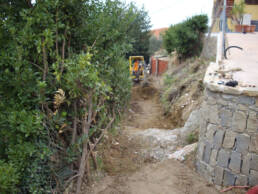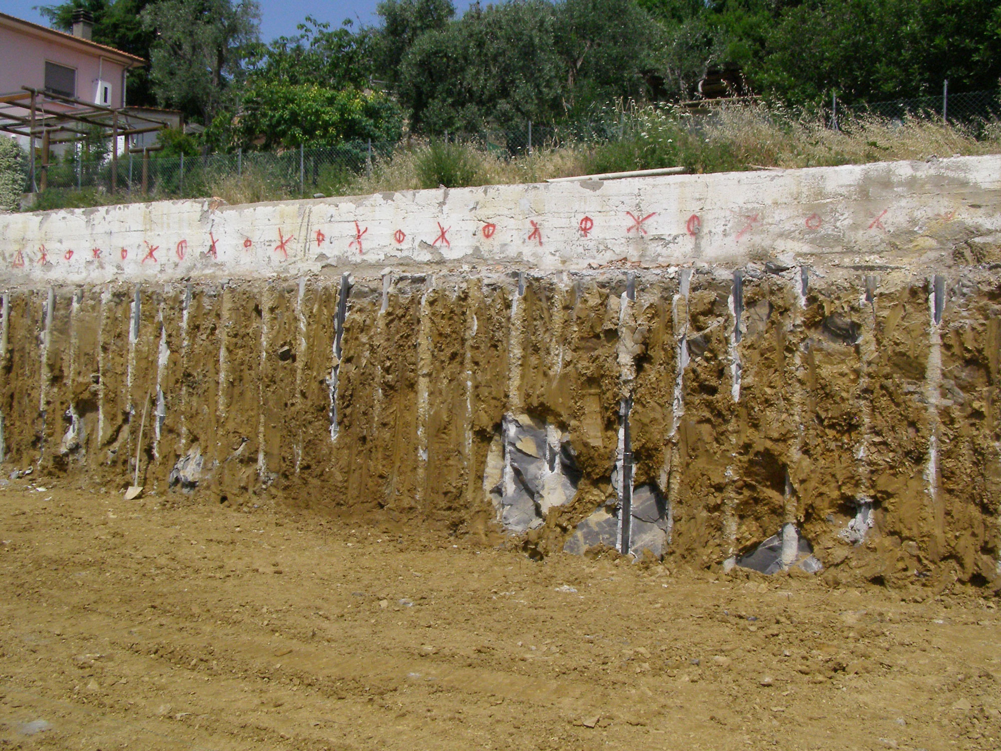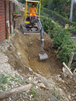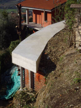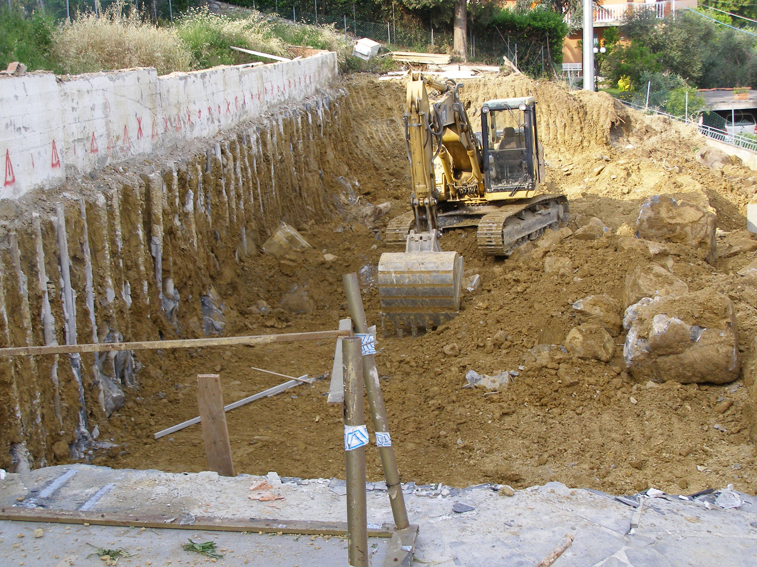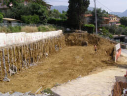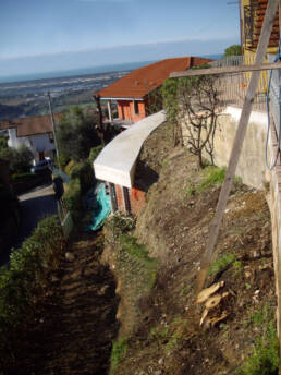 L’intervento è stato eseguito con la demolizione del capannone industriale esistente con metodo cuci e scuci, realizzazione di micropali di sostegno e scavi di sbancamento in terreno di forte pendenza.