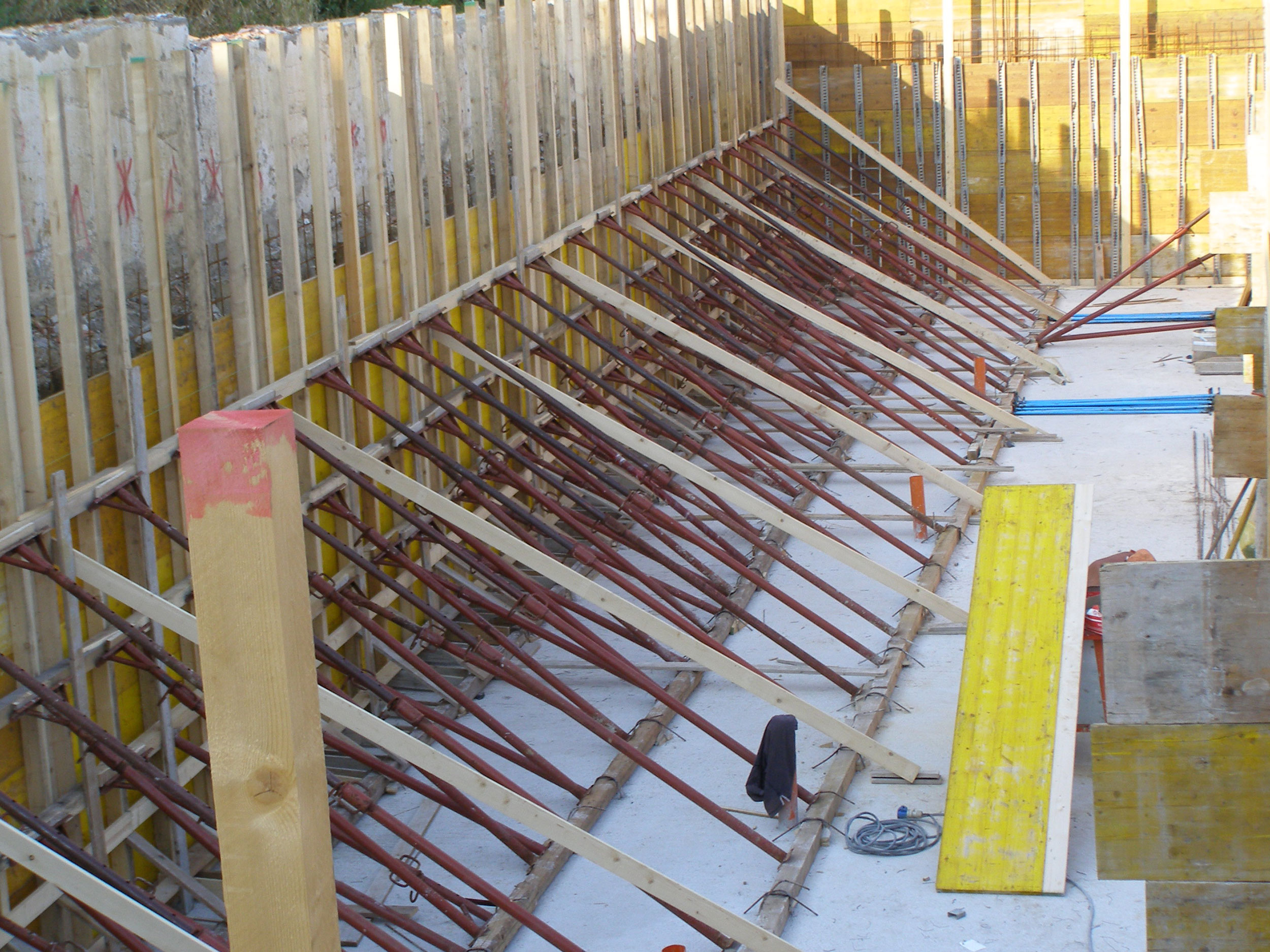 Strutture in cemento armato, muri mono faccia in controspinta, solai bausta, murature, opere di impermeabilizzazione e coibentazione.