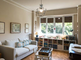 L’attenzione e la cura estrema per il recupero di elementi originali quali boiserie e cornici, infissi interni, parquet a lisca di pesce ed arredi hanno reso Casa Gioia un elegante appartamento caratterizzato da ambienti raffinati curati nelle finiture e nei particolari fin nei minimi dettagli.